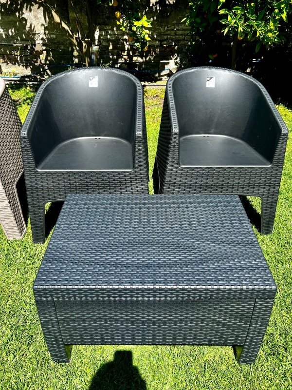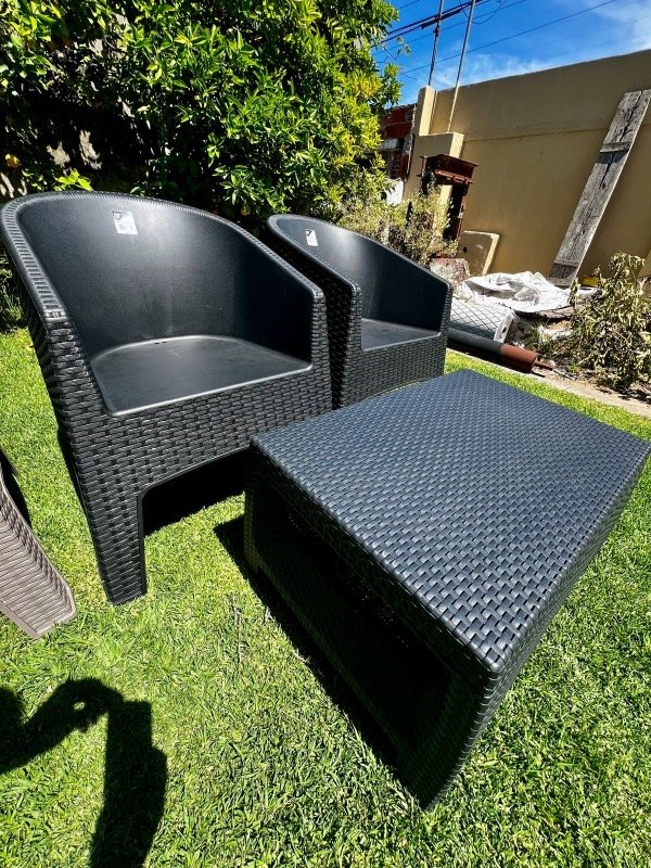 Set 4 sillones + mesa auxiliar estilo rattan bali