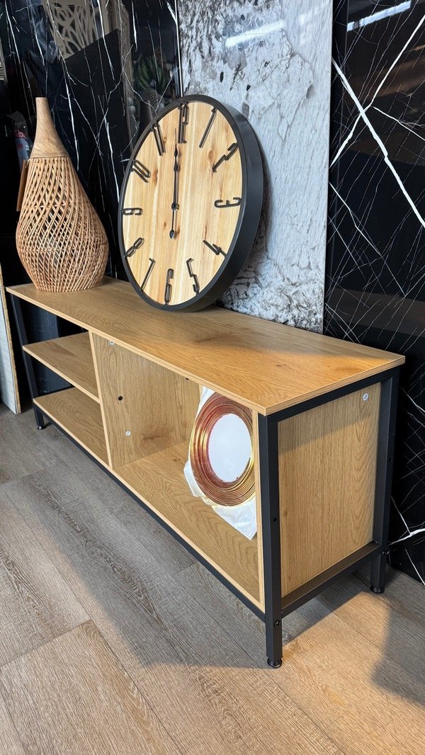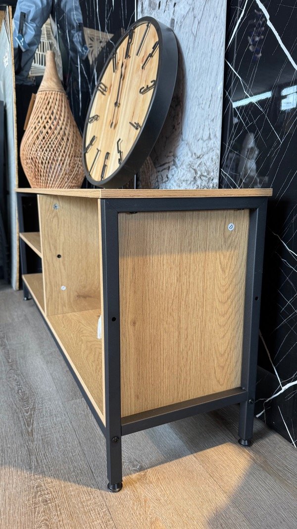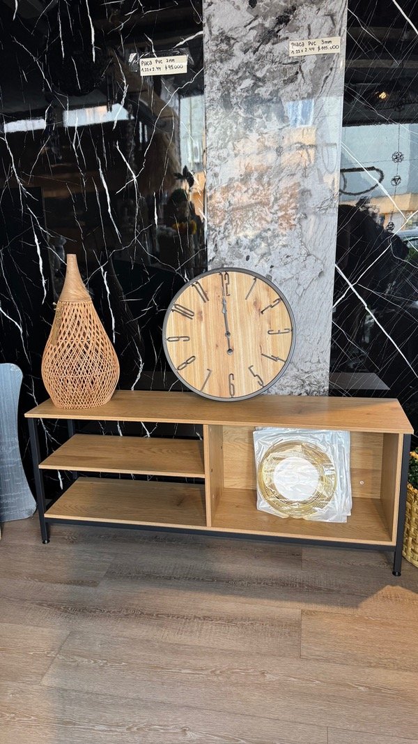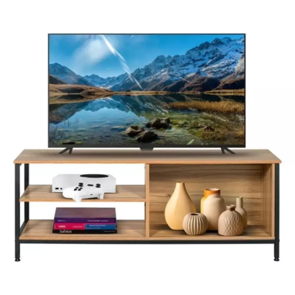 Dale un toque moderno e industrial a tu sala de estar con este elegante mueble para TV. Su diseño minimalista y funcional lo convierte en el complemento perfecto para cualquier espacio, ofreciendo estilo y practicidad. Características principales: Diseño industrial: Estructura de metal negro resistente y duradera, que aporta un toque urbano y contemporáneo. Tapa de madera clara: Superficie de madera con acabado natural, ideal para colocar tu televisor y dispositivos multimedia. Estantes abiertos: Amplio espacio de almacenamiento para organizar libros, revistas, dispositivos electrónicos y objetos decorativos. Versátil: Perfecto para salas de estar, dormitorios o incluso oficinas. Fácil montaje: Incluye todas las herramientas e instrucciones necesarias para un montaje rápido y sencillo. Especificaciones: Material: Hierro cromado y madera MDF Color: Negro y madera clara Dimensiones: 120 x 30 x 49 cm Peso: 12 Kg Beneficios: Añade un toque de estilo industrial a tu hogar. Funcional y versátil, se adapta a diferentes espacios. Amplio espacio de almacenamiento para organizar tus pertenencias. Fácil de montar y limpiar. Fabricado con materiales de alta calidad para mayor durabilidad.