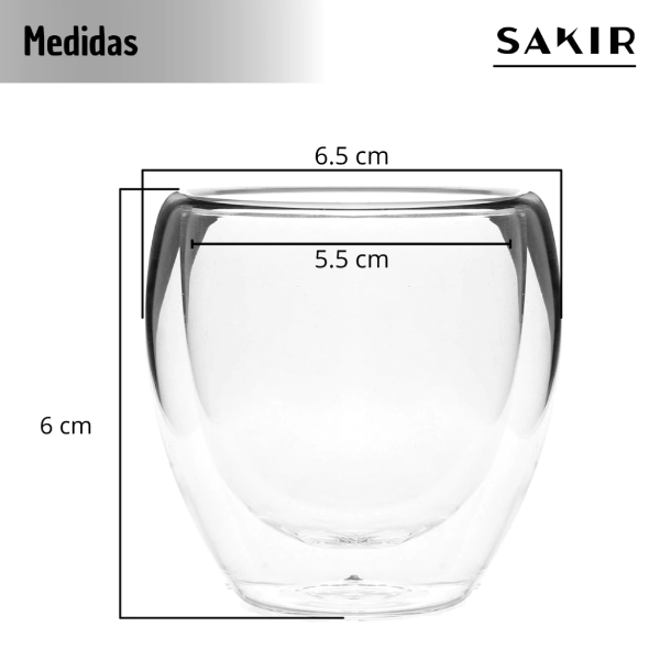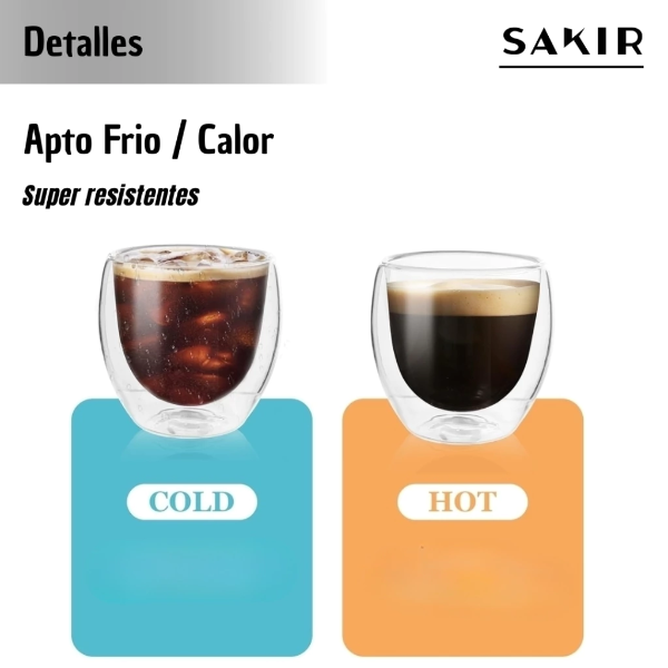 Aislamiento Térmico Superior: La doble capa de vidrio crea un efecto de aislamiento, manteniendo las bebidas calientes por más tiempo sin que la pared exterior queme, y las bebidas frías sin generar condensación externa (efecto "sudor").