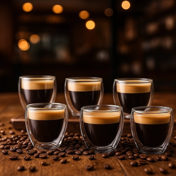 Diseño Estético: El vidrio transparente de doble pared ofrece un efecto visual flotante, ideal para presentar espressos, cortados, o cualquier bebida con capas.
