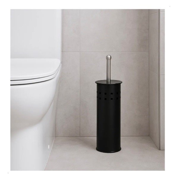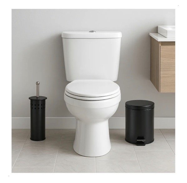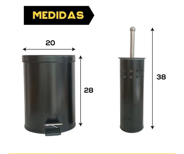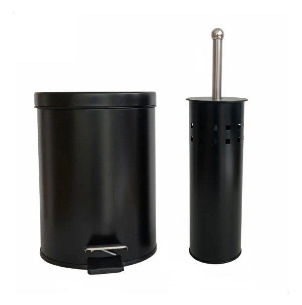 Combo cesto de 5 litros con pedal, tapa metalica de acero inoxidable color negro + escobilla