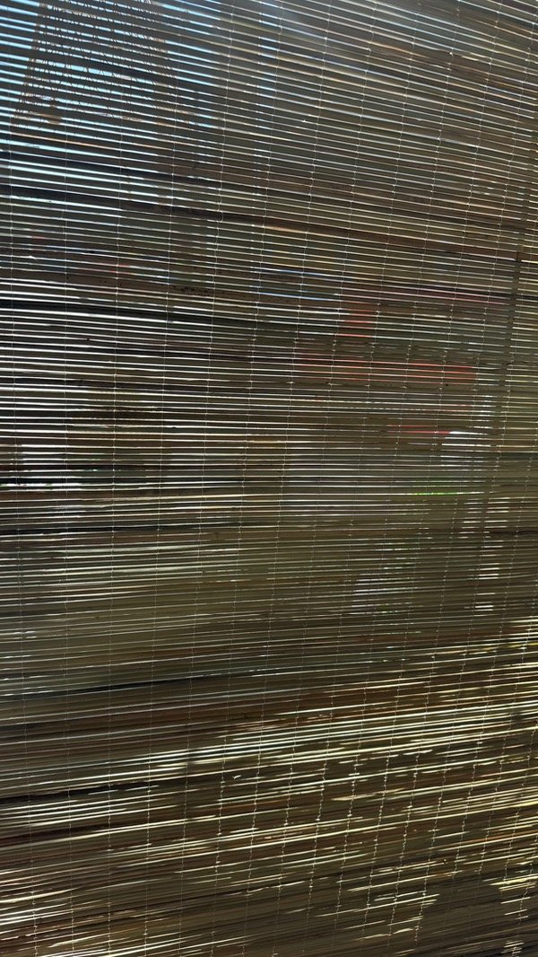 Incluye: cortina de junco, barral de madera en ambos extremos, soga de izado para subir, bajar y trabar a la altura deseada. Tono natural de junco (sin tratamiento)