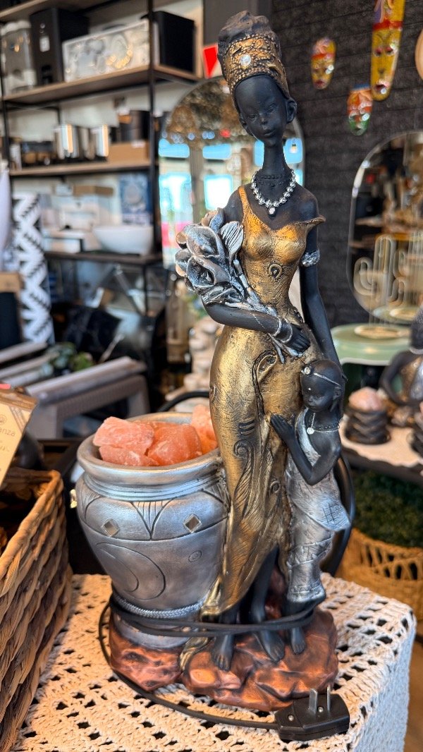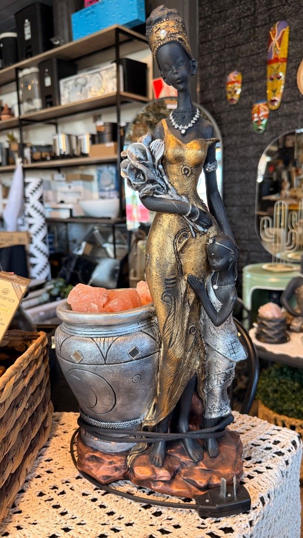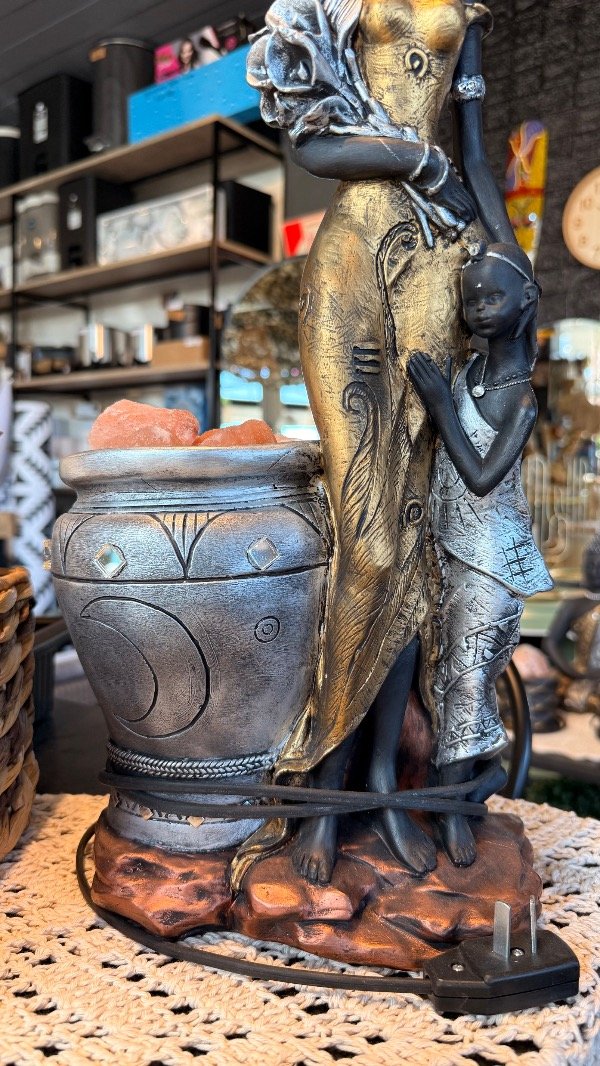 Lampara de sal africana con maceta