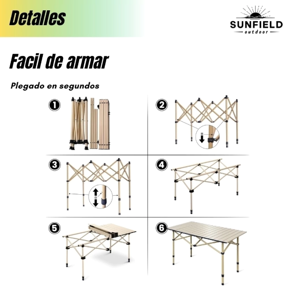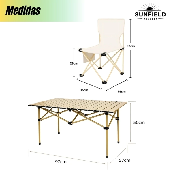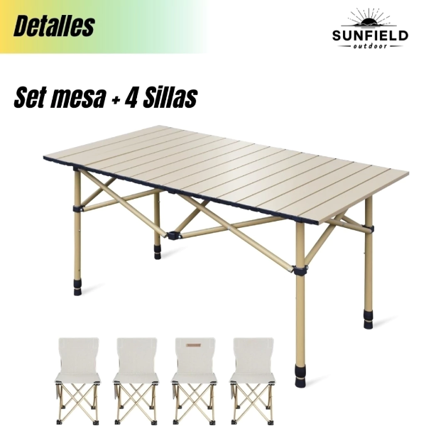 Lleva la comodidad y el estilo a donde vayas con este práctico y resistente set de Mesa Plegable Sunfield Outdoor y 4 Sillas de Camping. Ideal para disfrutar en el jardín, el balcón, la terraza o en tus escapadas de camping, picnic o pesca. Su diseño moderno y su fácil portabilidad lo hacen indispensable.