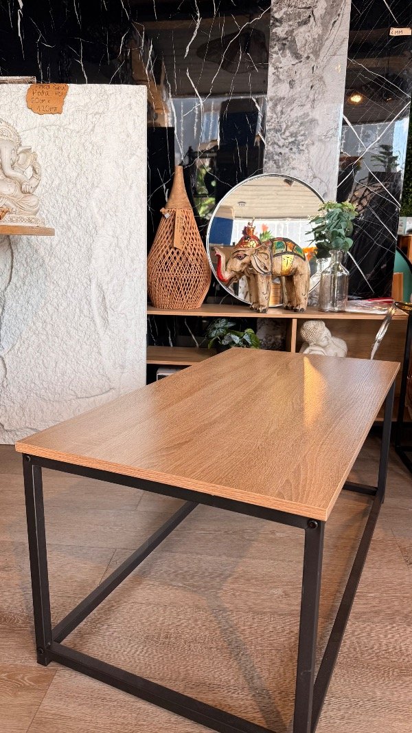 Dale un toque moderno y sofisticado a tu living con esta mesa ratona de estilo industrial. Su diseño minimalista combina una estructura metálica resistente con un tablero de madera MDF clara, creando un mueble funcional y estético que se adapta a cualquier decoración. Perfecta para disfrutar de tus momentos de relax, tomar un café o compartir una tarde con amigos. Características: Diseño Industrial: Estructura metálica en color negro y tablero de MDF con acabado en madera clara. Superficie Amplia: Ideal para colocar libros, revistas, adornos, tazas, bandejas y más. Materiales Resistentes: Estructura metálica y tablero de MDF de alta calidad para mayor durabilidad. Fácil Montaje: Incluye instrucciones y herramientas para un montaje rápido y sencillo. Estilo Versátil: Combina con diversos estilos de decoración, desde industrial hasta nórdico. Medidas: 100 x 50 x 40 cm Beneficios: Estilo y Funcionalidad: Un mueble versátil que se adapta a tus necesidades y decoración. Organización: Mantén tus objetos ordenados y a la vista. Ahorro de Espacio: Ideal para espacios pequeños que necesitan una mesa auxiliar funcional. Fácil Limpieza: Los materiales son fáciles de limpiar con un paño húmedo. Ideal para: Livings y salas de estar. Salas de espera. Oficinas y estudios. Espacios pequeños que necesitan una mesa auxiliar funcional. Amantes del diseño industrial y moderno. ¡No esperes más para darle un toque de estilo industrial a tu living! Incluye: Mesa ratona estilo industrial con estructura metálica. Kit de montaje. Instrucciones de montaje. ------------------------------------------------------------------