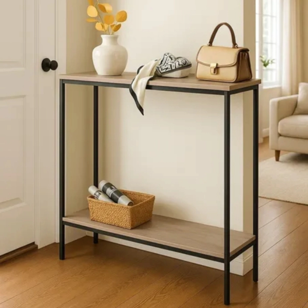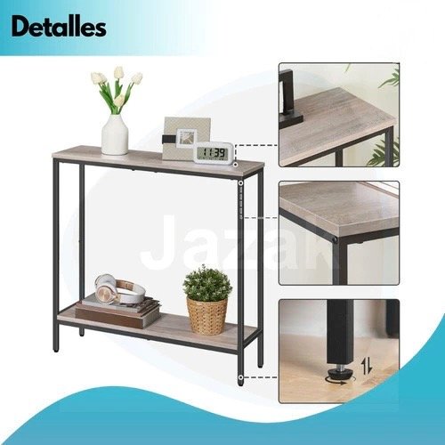 Dale un toque moderno y funcional a tu hogar con esta elegante mesa recibidora de Jazak. Su diseño industrial combina a la perfección con cualquier estilo de decoración, y sus estantes te brindan espacio adicional para organizar y exhibir tus objetos favoritos. Perfecta para recibidores, pasillos, salas de estar o dormitorios. Características: Diseño Industrial: Estructura metálica en color negro y tableros de MDF con acabado en madera clara. Doble Estante: Amplio espacio para organizar libros, plantas, cestas, cajas y más. Superficie Versátil: Ideal para colocar lámparas, marcos de fotos, decoración o como mesa de apoyo. Materiales Resistentes: Estructura de hierro y tableros de MDF de alta calidad para mayor durabilidad. Fácil Montaje: Incluye instrucciones y herramientas para un montaje rápido y sencillo. Medidas: 75 x 75 x 22 cm. Beneficios: Estilo y Funcionalidad: Un mueble versátil que se adapta a tus necesidades y decoración. Organización: Mantén tus objetos ordenados y a la vista. Ahorro de Espacio: Ideal para espacios pequeños que necesitan almacenamiento extra. Fácil Limpieza: Los materiales son fáciles de limpiar con un paño húmedo. Ideal para: Recibidores y pasillos. Salas de estar y comedores. Dormitorios. Oficinas y estudios. Tiendas y locales comerciales. ¡No esperes más para darle un toque de estilo industrial a tu hogar! Incluye: Mesa recibidor estilo industrial. Kit de montaje. Instrucciones de montaje.