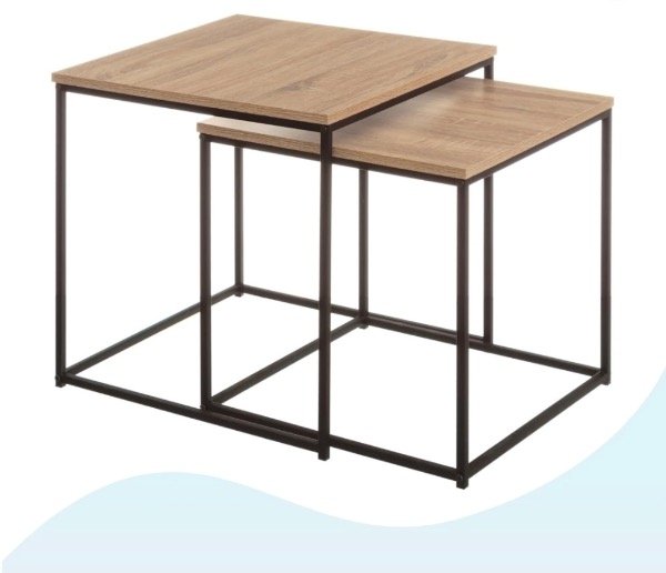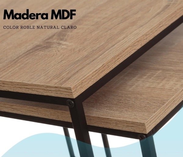 Diseño Nido Funcional: Este set incluye dos mesas de diferentes tamaños que se pueden guardar una debajo de la otra, optimizando el espacio cuando no están en uso. Esta característica las hace ideales para ambientes con dimensiones reducidas o para aquellos que buscan flexibilidad en la disposición del mobiliario.