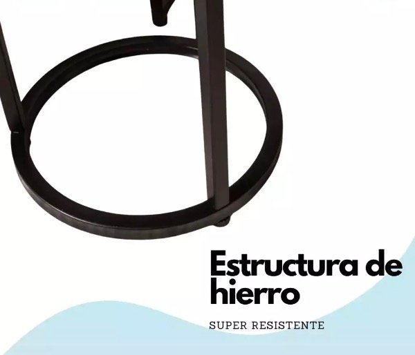 Estructura: Fabricadas con hierro de alta resistencia, acabado en pintura electrostática color negro mate. Este proceso garantiza una superficie uniforme, duradera y resistente a la corrosión, brindando estabilidad y una estética industrial sofisticada.