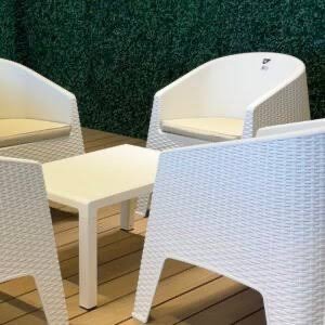 Set 4 sillones + mesa auxiliar + almohadones