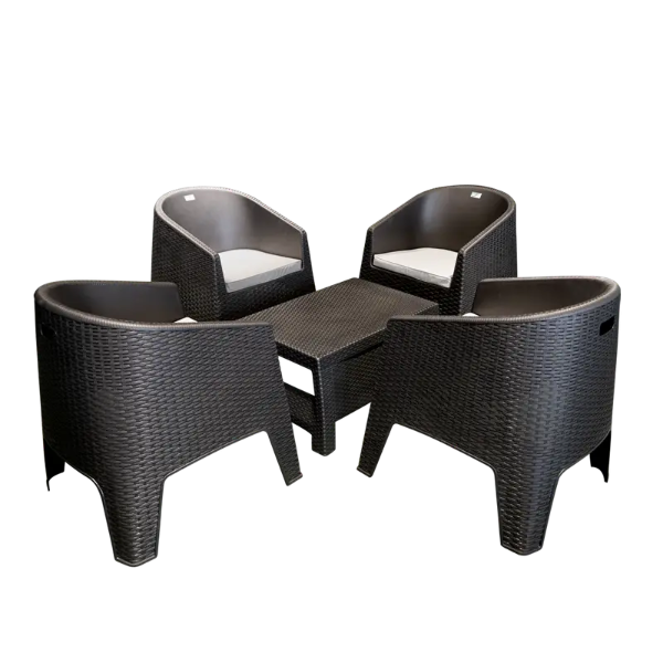 El combo de 4 sillones Oasis con almohadón + mesa Bali es la solución completa para disfrutar de tus espacios al aire libre con confort y estilo. Con un diseño moderno en plástico simil ratán, este conjunto es ideal para balcones, patios, jardines o terrazas.