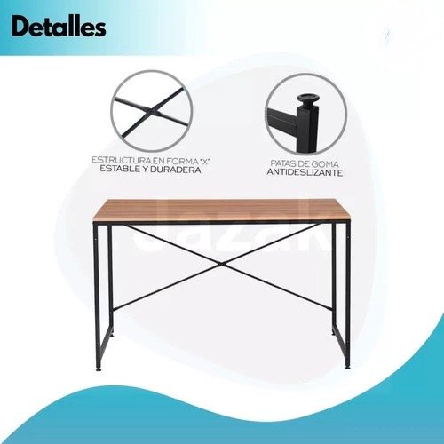 Es la opción perfecta para quienes buscan combinar funcionalidad, estilo y resistencia en su espacio de trabajo o estudio. Con materiales de alta calidad y una estructura metálica robusta, este escritorio ofrece una excelente durabilidad y un diseño industrial que se adapta a cualquier tipo de ambiente, ya sea en el hogar o en la oficina. Su mesa de melamina proporciona una superficie amplia para que puedas trabajar cómodamente, con medidas de 120 cm de largo, 60 cm de ancho y 75 cm de alto. Este amplio espacio de trabajo te permitirá organizar tus herramientas, computadoras o materiales de estudio de manera eficiente. El marco de tubo de acero asegura una estructura sólida y resistente, soportando un peso máximo de hasta 50 kg, lo que te da la confianza de que tu escritorio se mantendrá firme y funcional durante mucho tiempo. Muy fácil de armar, y viene con un manual de instrucciones que te guiará a través del proceso, lo que lo convierte en una opción práctica y rápida para cualquier persona que necesite un escritorio funcional y bien diseñado. Con un peso de 10 kg, es ligero pero extremadamente resistente, haciendo de este escritorio una opción ideal para quienes buscan un espacio de trabajo confiable y con estilo industrial. Características: -120cm x 60cm x 75cm -Materiales: Hierro y MDF -Facil de armar (Incluye todo lo necesario) -Melamina de facil limpieza -Fondo en cruz para mas estabilidad -Acabados de calidad.