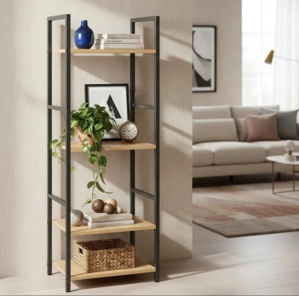 Este estante ofrece una excelente capacidad de almacenamiento sin ocupar demasiado espacio. Su diseño compacto y vertical permite aprovechar al máximo los ambientes pequeños, adaptándose con facilidad a hogares, oficinas o estudios. Los cuatro niveles proporcionan suficiente espacio para libros, carpetas, revistas o elementos decorativos, manteniendo todo perfectamente organizado y accesible.