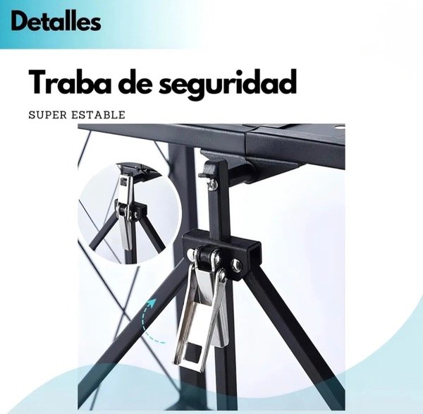 Diseño Plegable Innovador: Incorpora un sistema de plegado que facilita su almacenamiento compacto cuando no está en uso y su transporte. Se despliega en segundos, sin necesidad de herramientas ni montajes complejos, lista para ser utilizada de inmediato.