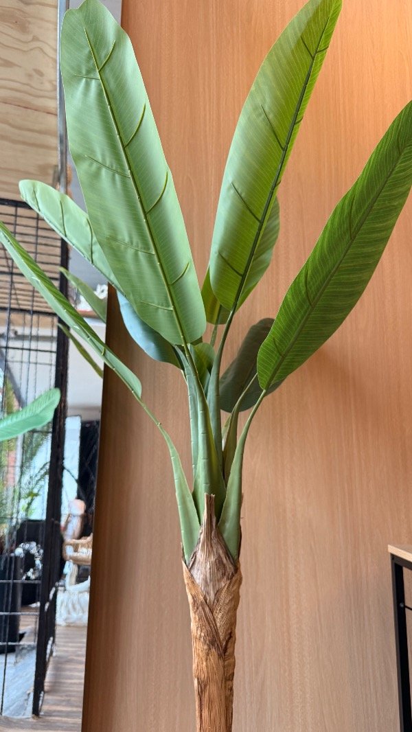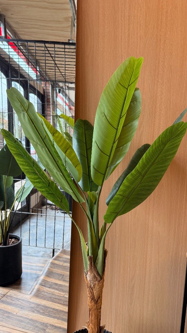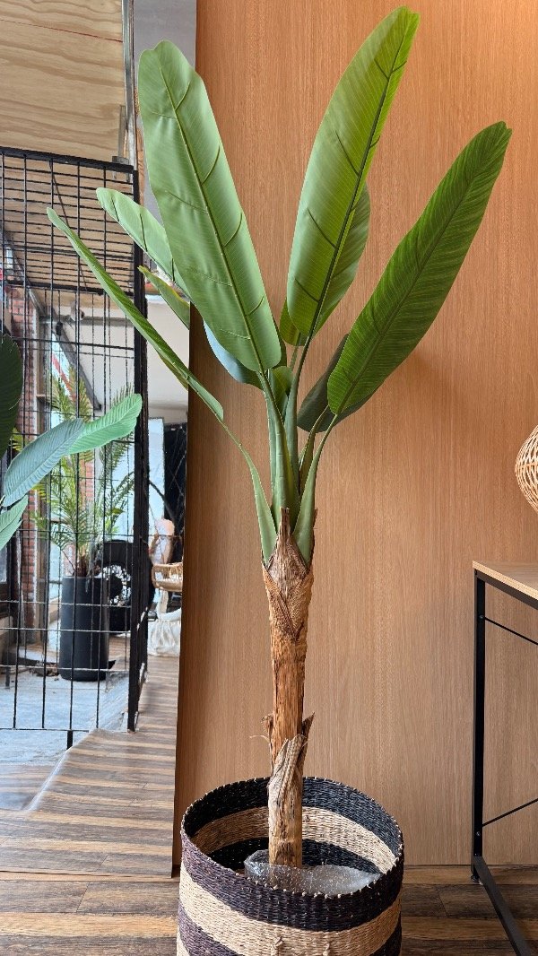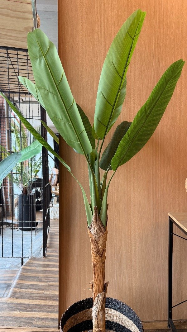 El banano artificial (Banana Tree) de 150 cm es una planta decorativa de alto impacto, ideal para interiores, con hojas grandes y detalladas que aportan un estilo tropical y fresco. Es una opción sin mantenimiento, perfecta para livings o esquinas, destacando por su calidad importada.