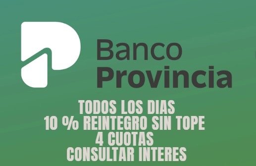 4 cuotas todos los dias, con 10 % reintegro sin tope