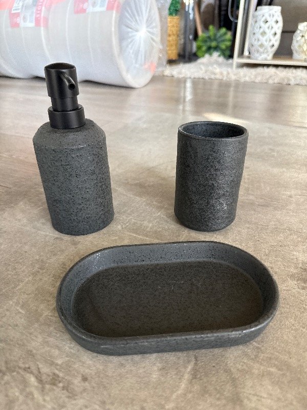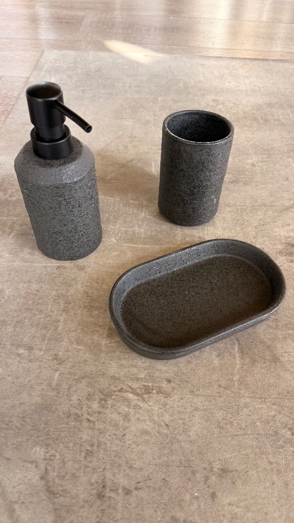 Incluye: Vaso, jabonera para jabon liquido y jabon de tocador