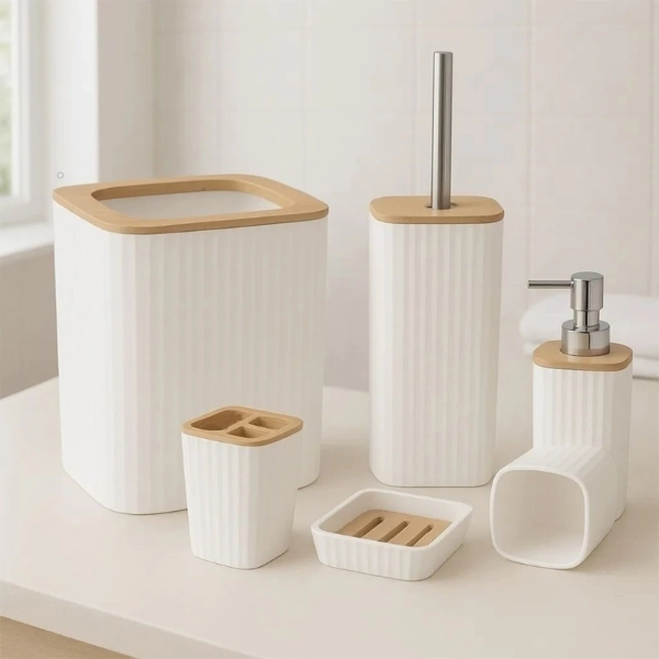Organización y Funcionalidad: Este set completo te proporciona todos los elementos esenciales para mantener tu baño ordenado y con estilo.