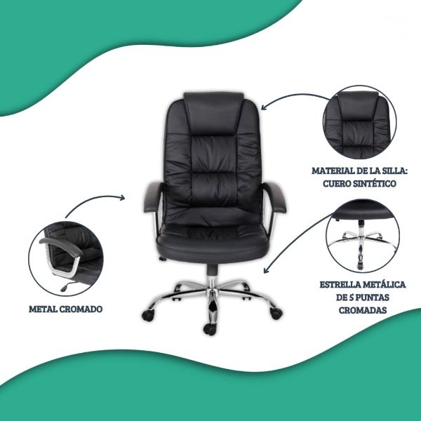 Apoyabrazos: METAL CROMADO Y TAPIZADO DE ECOCUERO