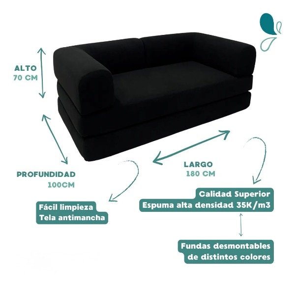 Además, es ideal para espacios reducidos, ya que se transforma en una cama amplia sin patas ni mecanismos complejos.